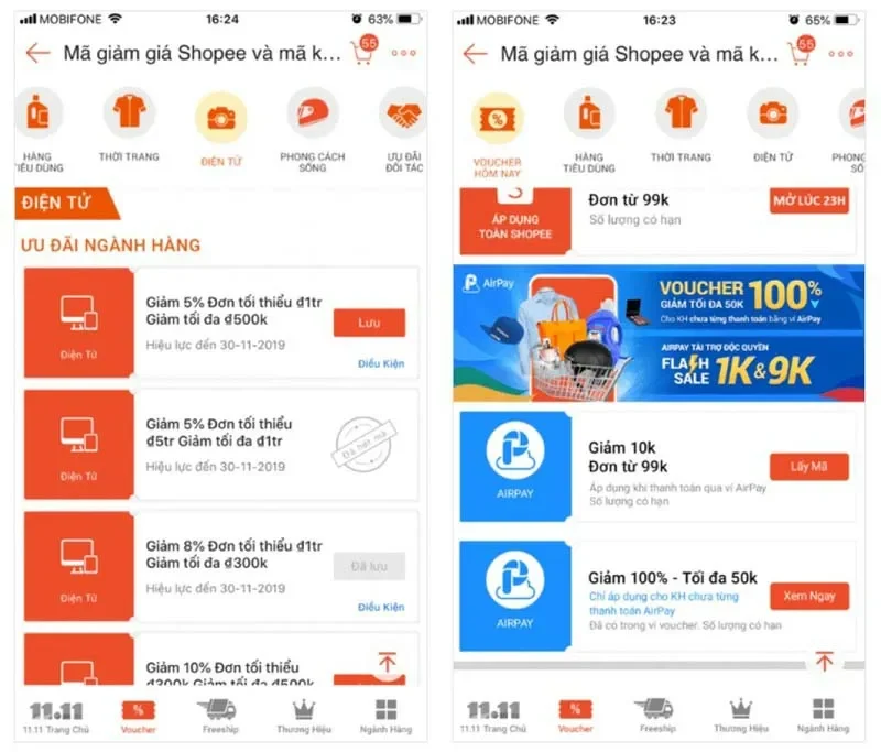 • Tận dụng các “voucher” hoàn xu Shopee: Shopee thường xuyên tặng người dùng các “voucher” hoàn xu, cho phép bạn được hoàn lại một phần tiền sau khi mua hàng. Bạn có thể tận dụng các “voucher” này để “tích lũy” xu Shopee, và sau đó sử dụng xu để giảm giá cho các đơn hàng tiếp theo. Đây cũng là một cách tiết kiệm rất hiệu quả đó.